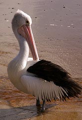 Pássaros Australianos. Da esquerda para direita, Kookburra, Pelicano e Papagaio.