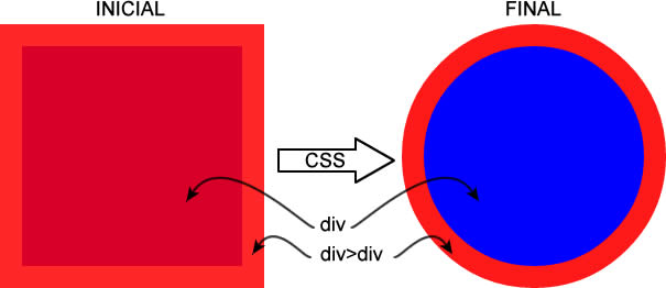 É dada uma marcação HTML com um elemento DIV pai e seu elemento DIV filho, ou seja, um DIV aninhado em outro e algumas regras de estilo para os seletores div (pai) e div > div (filho). Faça download da marcação HTML neste link (abre em nova janela).