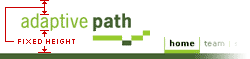 Para concluir, voltemos ao site Adaptive Path e sua barra de navegação que demonstra os diferentes usos desta técnica de fazer o absoluto, relativo. Eu poderia ter definido um valor fixo para margin-top da barra de navegação e pronto. Mas naquele caso eu queria que o topo tivesse sua altura constante independentemente de como o usuário dimensionasse a fonte de seu browser. Em outras palavras, eu não queria que a borda verde escura embaixo da barra navegação tivesse qualquer deslocamento vertical em relação ao logotipo, como mostrado nos Diagramas 2-A and 2-B.