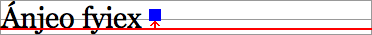 Nota: As linhas top e text-top parecem ser a mesma. Contudo existem situações nas quais a linha top (mostrada na cor vermelha) é mais alta que o conteúdo e em consequência, mais alta que a linha text-top (mostrada na cor verde). Um exemplo desta situação ocorre quando existe uma imagem mais alta que a altura do texto, como mostrado a seguir: