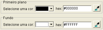 Os controles para escolha da cor dividem-se em 2 seções (fundo e primeiro plano) sendo que cada uma delas oferece três maneiras para escolher a cor a testar.