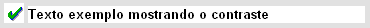 A seção dos Resultados está dividida em um ícone passou/falhou e textos de resultados em sumário e texto de resultados completos: Um resultado que passou é indicado por uma marca tipo 'ticado' (em forma de V). Um resultado que falhou é indicado por um X (xis). Uma caixa de texto mostra o resultado escrito em fundo e primeiro plano nas cores testadas.