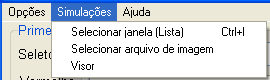 O menu 'Simulações' oferece três opções para simular diversos tipos de restrições visuais.