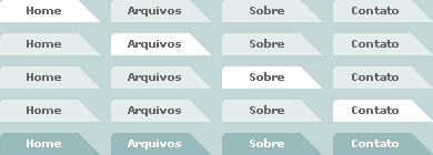 Essa técnica de construção de uma imagem para dois estados do link é também usada para conter o estado do link visitado e do link corrente, ou uma combinação dos quatro estados conforme a necessidade específica de cada projeto. No menu da navegação principal do meu blog usei uma só imagem para os estados dos links em repouso, over e corrente. A imagem usada é mostrada a seguir.