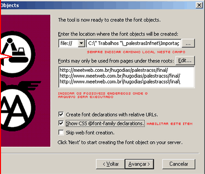 Ao fim você terá um relatório com o código necessário para a importação das fontes