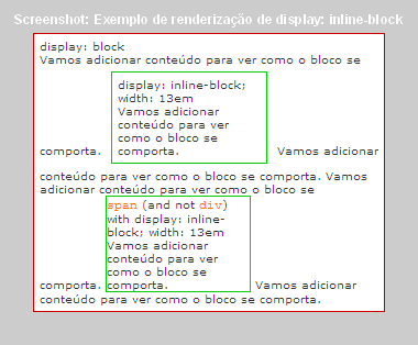 span (and not div) with display: inline-block; width: 13emVamos adicionar conteúdo para ver como o bloco se comporta. Vamos adicionar conteúdo para ver como o bloco se comporta.