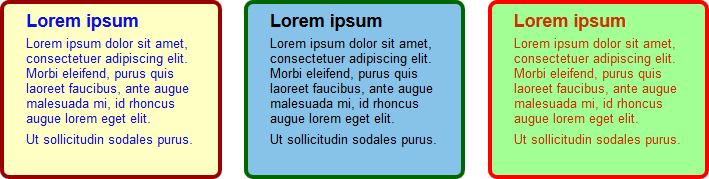 Você poderá combinar cores e elementos de estilização dos boxes de modo a obter uma infinidade de boxes diferentes em apresentação com o mínimo de manipulação da folha de estilos e/ou da marcação HTML.