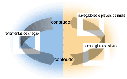 - os usuários podem ter um trabalho extra para compensar falhas de suporte para acessibilidade em seus navegadores, players de mídia e tecnologias assistivas ou falhas de suporte para conteudo; por exemplo, usando diferentes browsers ou tecnologias assistivas para suprir diferentes itens de acessibilidade.